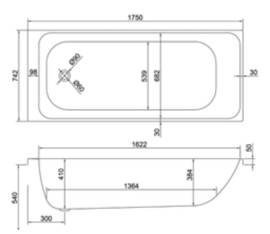 Carron Highgate 1700 x 900 Carronite Traditional Shower Bath