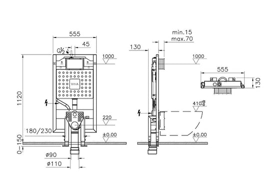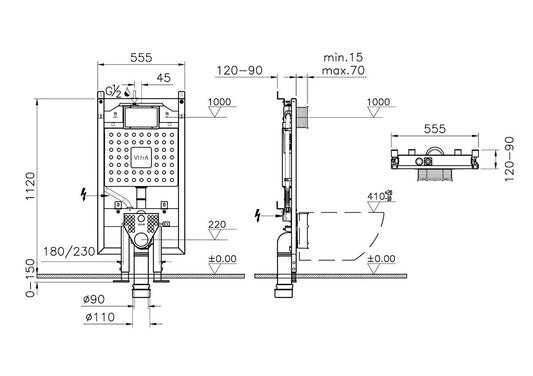Vitra V-Fix Prime 112cm height Frame for wall hung toilet