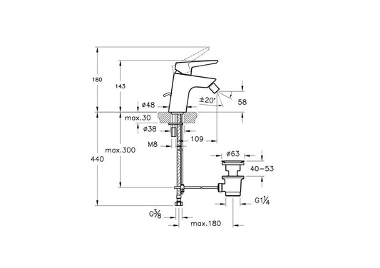 Vitra Solid S Bidet Mixer - with Pop-Up