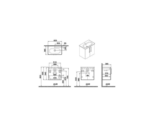 Vitra Zentrum 600mm Compact Wall Hung Washbasin Unit With 2 Doors