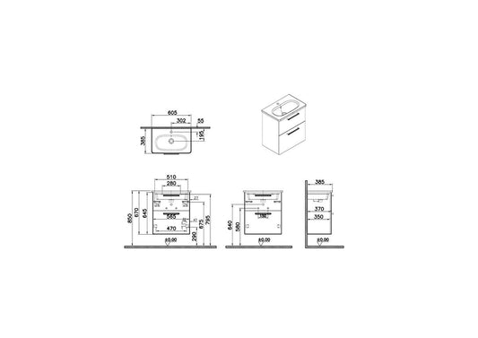 Vitra Zentrum 600mm Compact Wall Hung Washbasin Unit With 2 Drawers