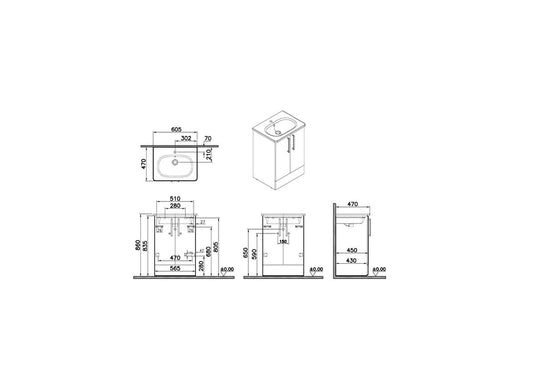 Vitra Zentrum 600mm Floor Standing Washbasin Unit With 2 Doors