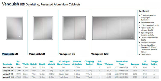 HiB Vanquish 123cm 3 Door Illuminated Recessed Aluminium Cabinets