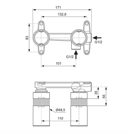 Ideal Standard Built-in basin mixer kit 1, horizontal