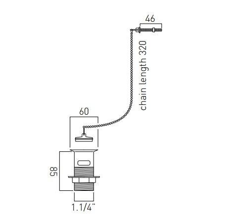 Vado Basin Waste Metal Plug And Chain 1.1/4"