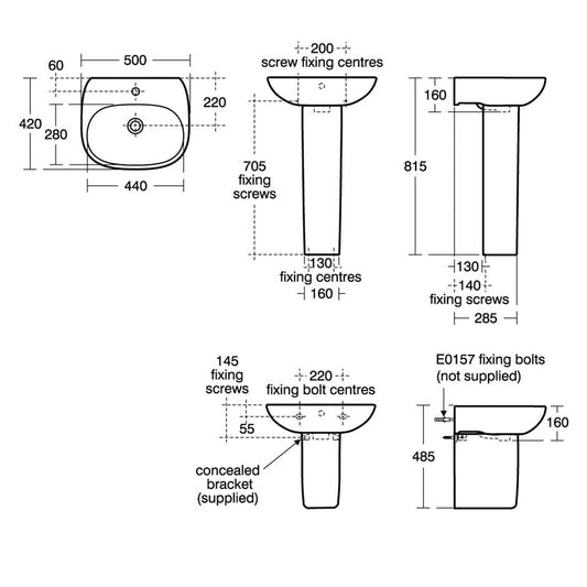 Ideal Standard Concept Space 55 x 38cm short projection pedestal basin