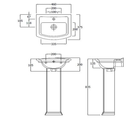 Silverdale Victorian 635mm Basin with Pedestal/Stand - White/Old English