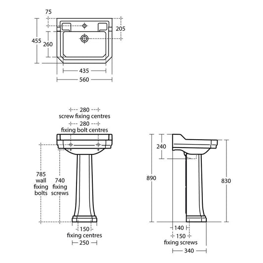 Hudson Reed Arlo 550mm Basin And Full Pedestal - 1 Tap Hole