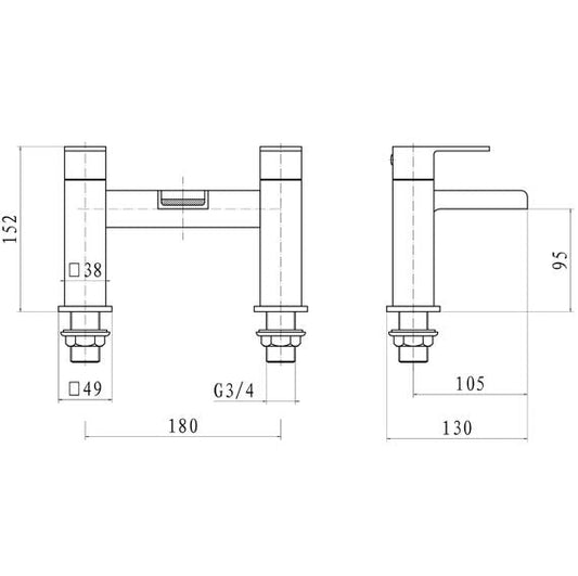 Vado Zoo Deck Mounted 2 Hole Bath Filler