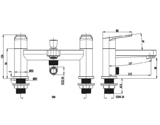 RAK-Origin Deck Mounted Bath Filler - Chrome