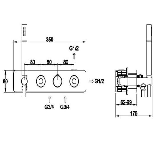 RAK-Prima Tech Dual Outlet Concealed Thermostatic Shower with Hand Shower