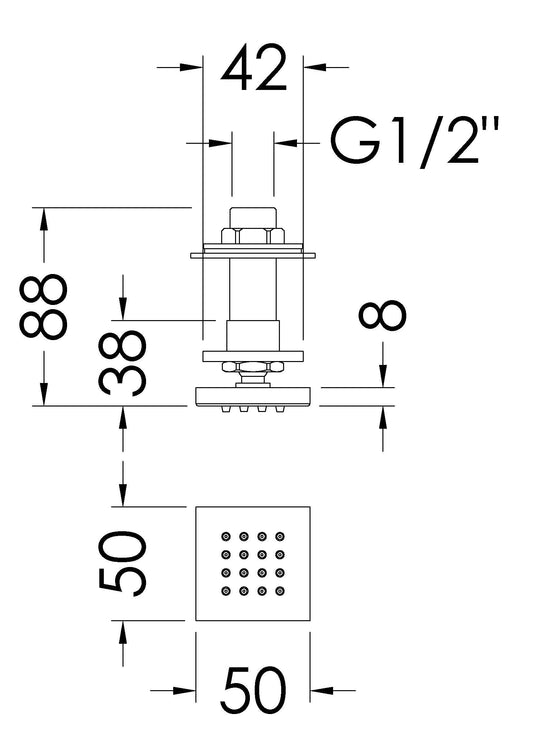 Nuie Square Thermostatic Bottom outlet Bar Valve - Clearance