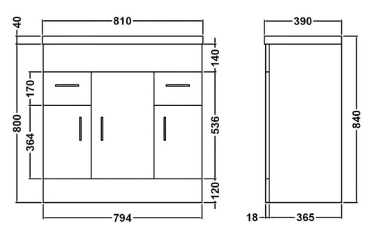 Nuie Core Floorstanding Cloakroom 500mm WC Unit