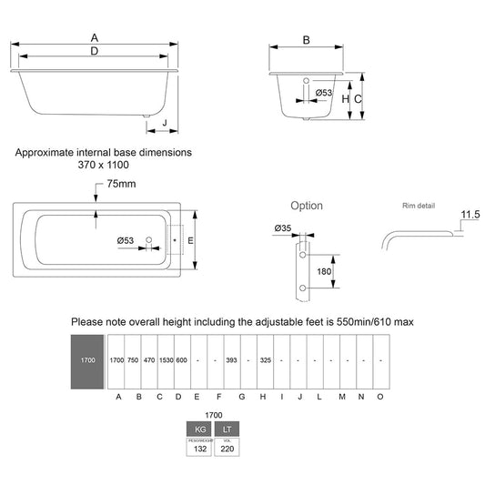Imperial Harrington Single Ended Cast Iron Bath - White