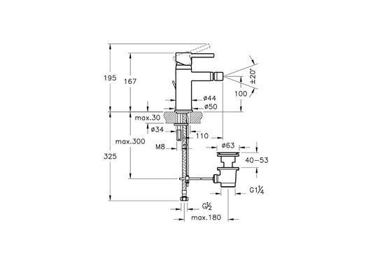 Vitra Minimax S Bidet Mixer with pop up waste