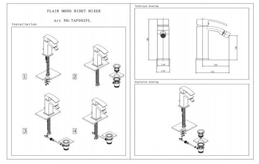 Kartell Flair Mono Bidet Mixer Tap Chrome