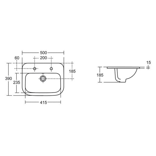Roca Debba 500 x 410mm 1TH In-Countertop Washbasin