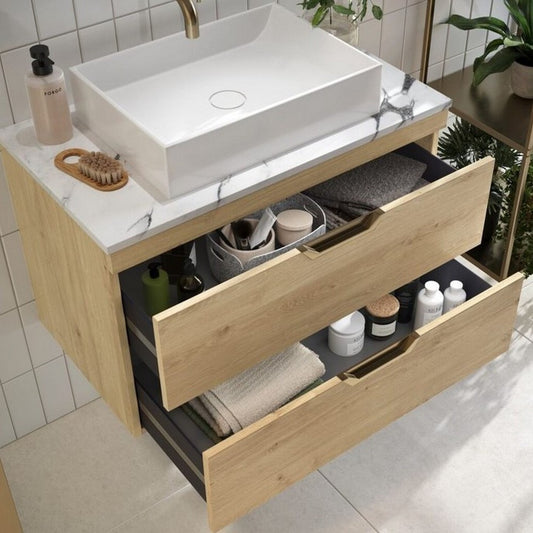 Nuie Arno 800mm Wall Hung 2 Drawer Vanity & Basin/worktop
