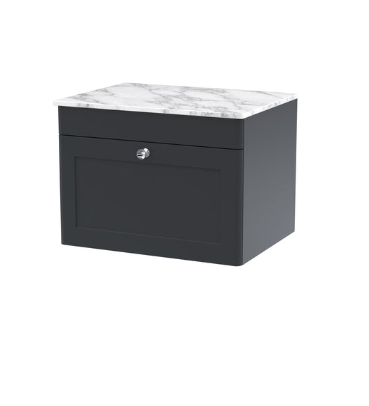 Nuie Classique 600mm Wall Hung 1-Drawer Vanity with Plain Marble Top