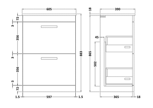 Nuie Havana 600 Wall Hung 2-Drawer Unit & Basin/Worktop