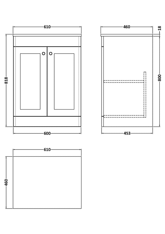 Nuie Classique 600mm Floor Standing 2-Door Vanity with Plain Marble Top