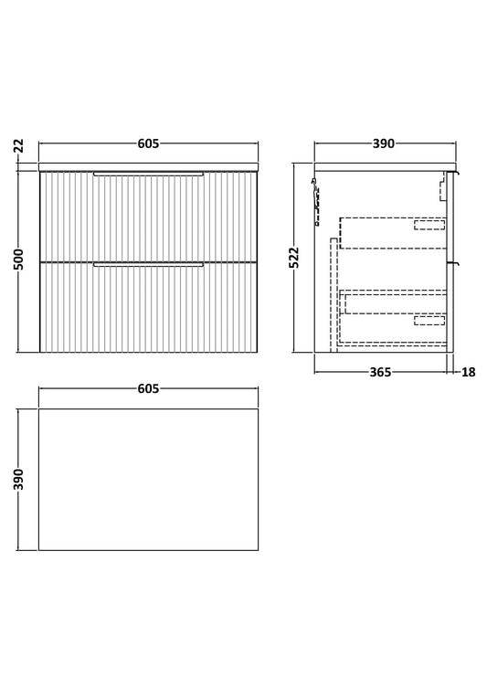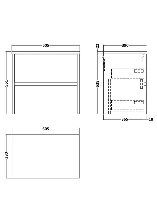 Nuie Deco 600 Wall Hung 2-Drawer Vanity & Laminate Worktop