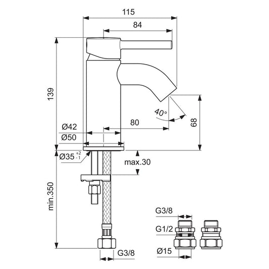 Ideal Standard Ceraline mini single lever basin mixer - no waste