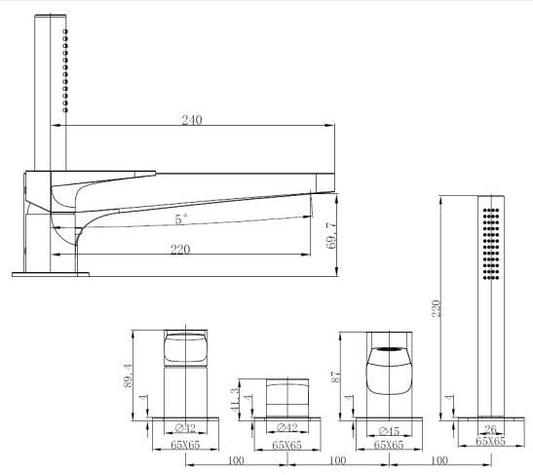 RAK-Blade 4 Hole Deck Mounted Bath Shower Mixer - Chrome
