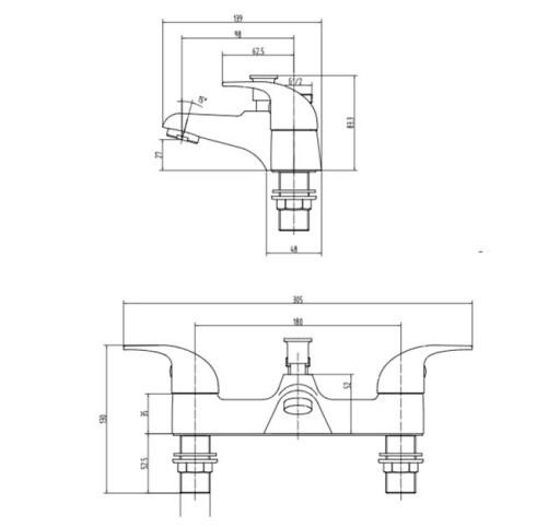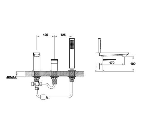 RAK-Moon 3 Hole Deck Mounted Bath Shower Mixer