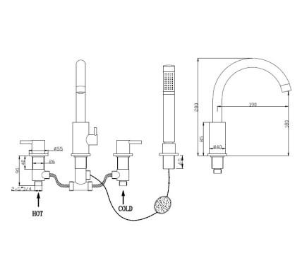 RAK-Curve Deck Mounte Bath Shower Mixer