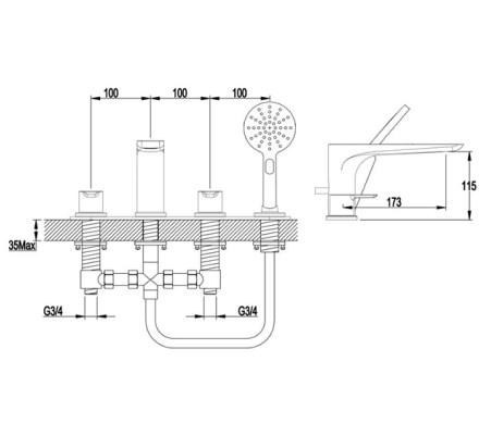 RAK-Ischia 4 Hole Deck Mounted Bath Shower Mixer