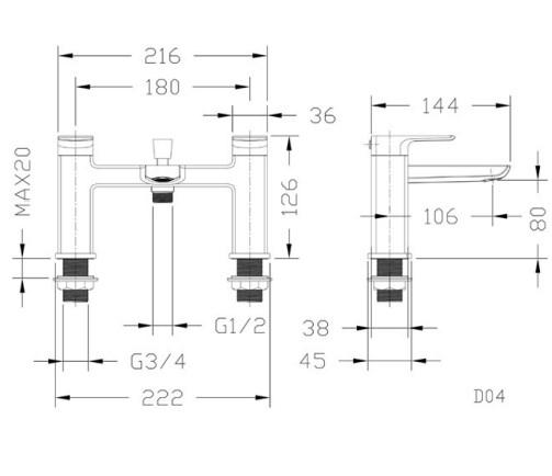 RAK-Moon Deck Mounte Bath Shower Mixer