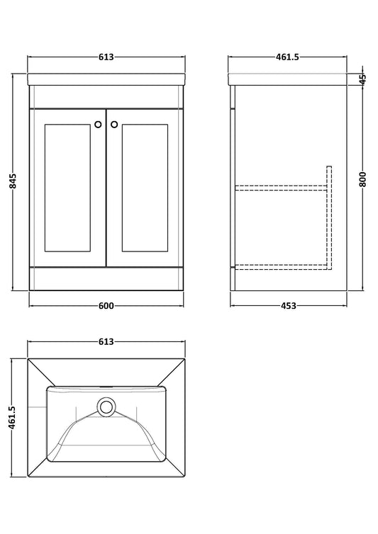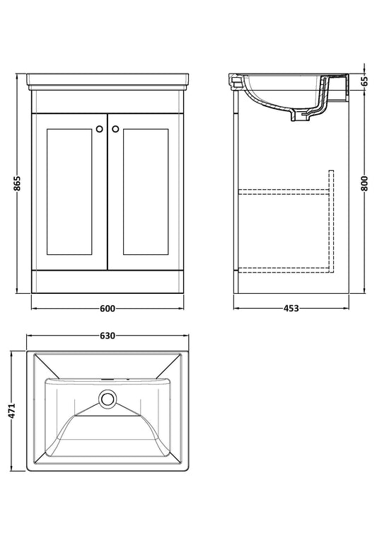 Nuie Classique 600mm Floor Standing 2 Door Vanity & Basin