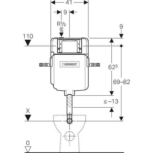 Geberit Kappa concealed cistern 15cm 6 / 3 litres installation height 82cm