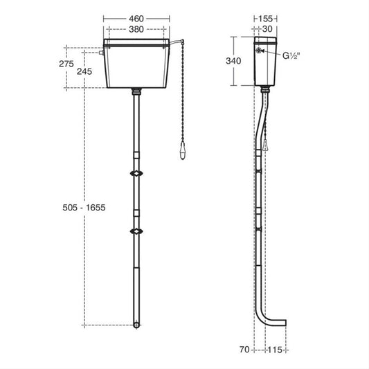 Armitage Shanks Regal High Level Side Inlet Cistern with Fittings