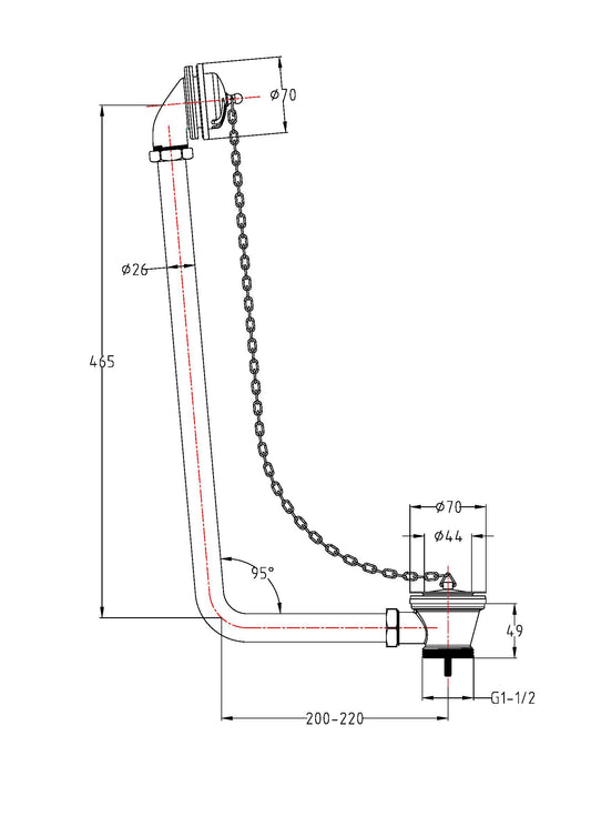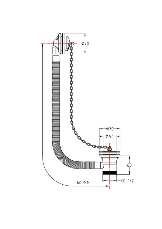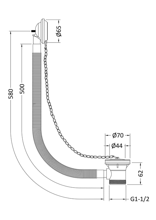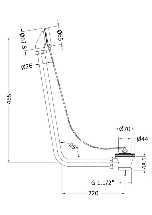 Hudson Reed Extended Retainer Bath Waste with Overflow, Plug & Chain - Baths up to 20mm thick