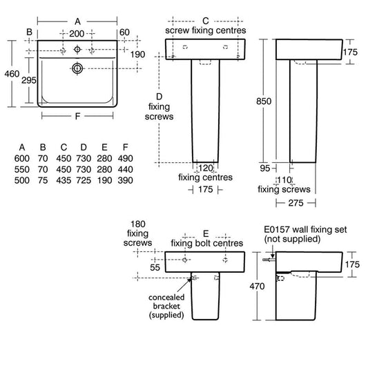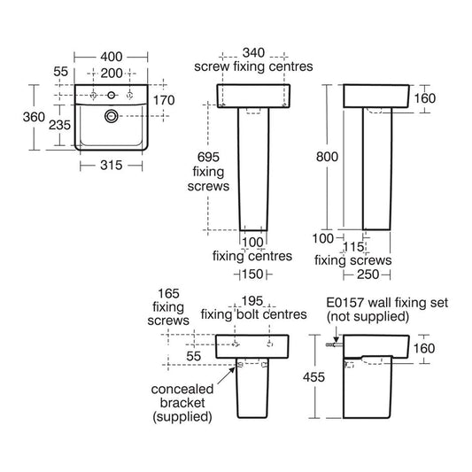Ideal Standard Concept Space 55 x 38cm short projection pedestal basin