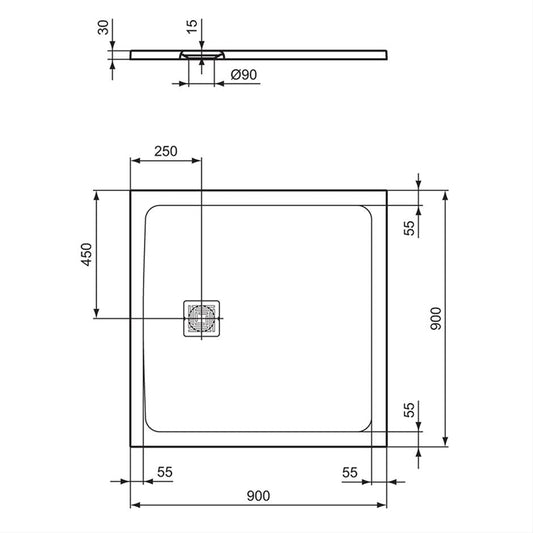 Ideal Standard UltraFlat S+ Square Shower Trays with SS Waste cover