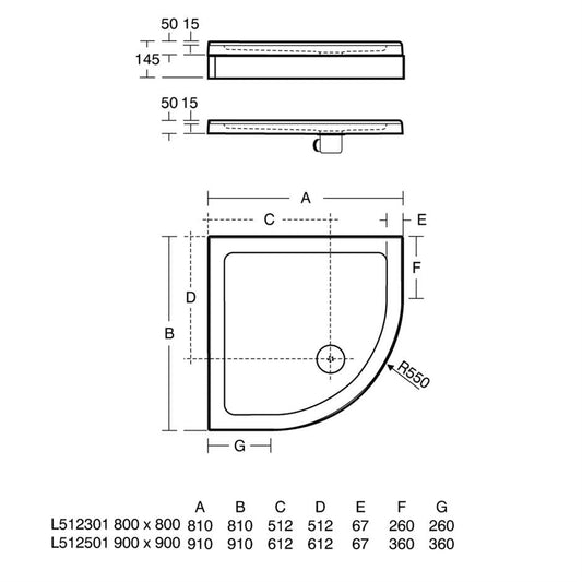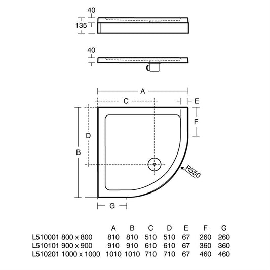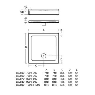 Ideal Standard Simplicity Low Profile 800 Quadrant Upstand Tray & Waste