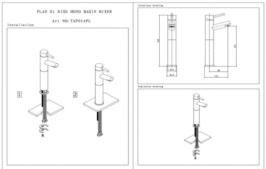 Kartell Plan Hi-Rise Mono Basin Mixer Tap Chrome