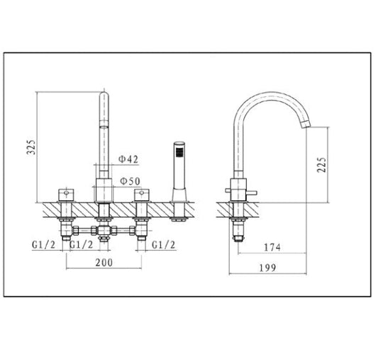 Kartell Plan Bath Shower Mixer Tap - 4 Tap Hole Chrome