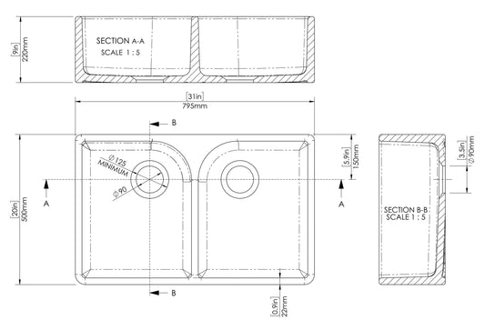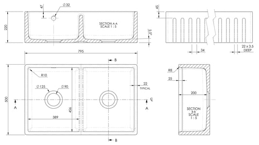 Nuie Butler Sink Full Weir 795 x 500 x 220