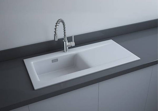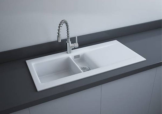 RAK Gourmet Dream Kitchen Sink 1, 1.5 Bowl With Single Reversible Drainer - Matt White