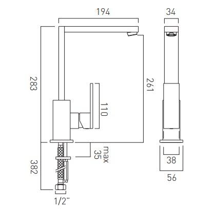 Vado Tetra Mono Sink Mixer Deck Mounted