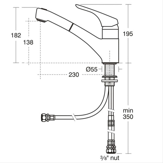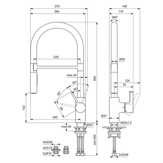 Ideal Standard Gusto L Spout Kitchen Mixer With 2 Function Pull Down Spout