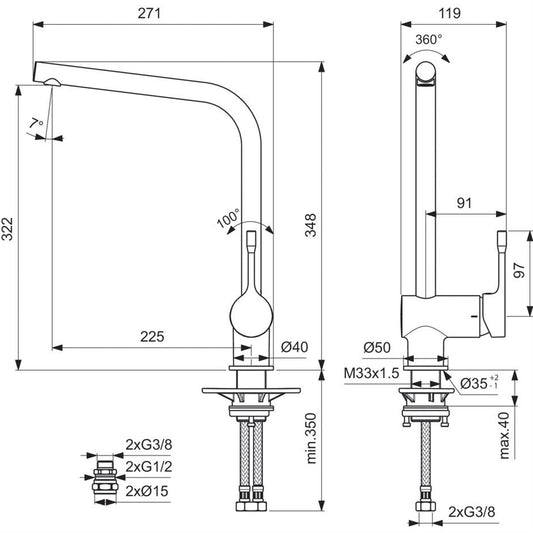 Ideal Standard Single Lever Semi-Pro Kitchen Mixer - Chrome