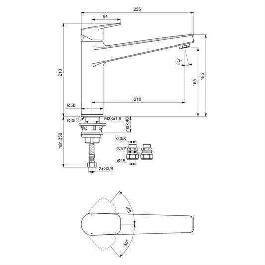 Ideal Standard Ceraplan single lever high cast spout kitchen mixer