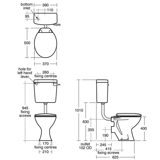 Nuie Carlton Low Level Toilet with Cistern & Pipe Kit