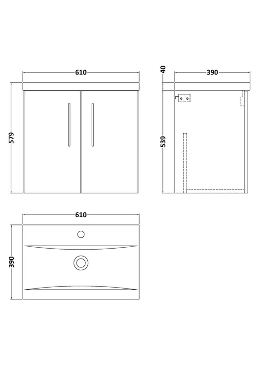 Nuie Arno 600mm Wall Hung 2 Door Vanity & Basin/Worktop