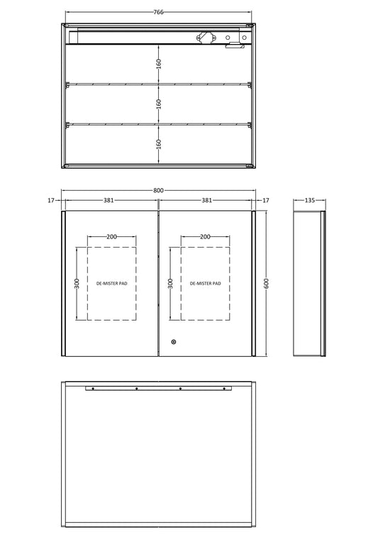 Nuie Leda 600 x 800mm 2 Door LED Touch Sensor Mirror Cabinet